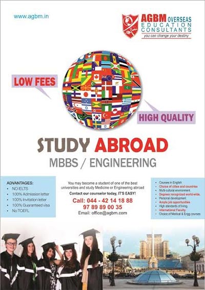 AGBM offering undergraduate professional courses ( MBBS/Engineering) for students who are completing 12th this year and wish to study abroad.