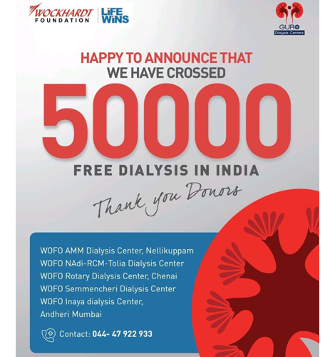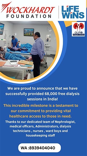 In a remarkable achievement, Wockhardt Foundation, in collaboration with Guru Dialysis Centers, has successfully provided