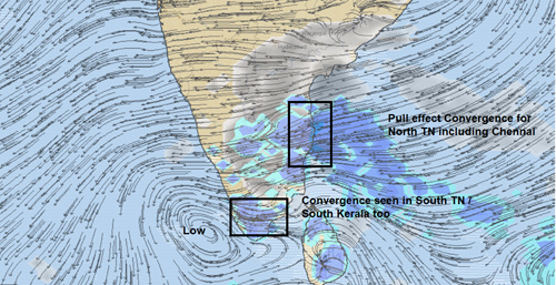 Pull effect rains will give on and off rains for North TN and interiors too while south TN and Kerala will see some rains too