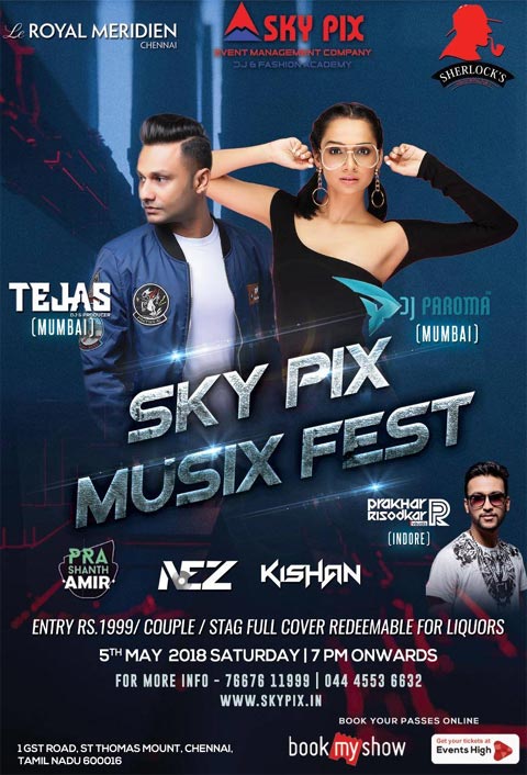 National DJ Tejas and DJ Paroma from Mumbai and Nez, Kishan, Prakhar Risodkar (Indore), Prashant amir performance. The music fest- club nite is happening in Le Royal Meridien, Chennai.