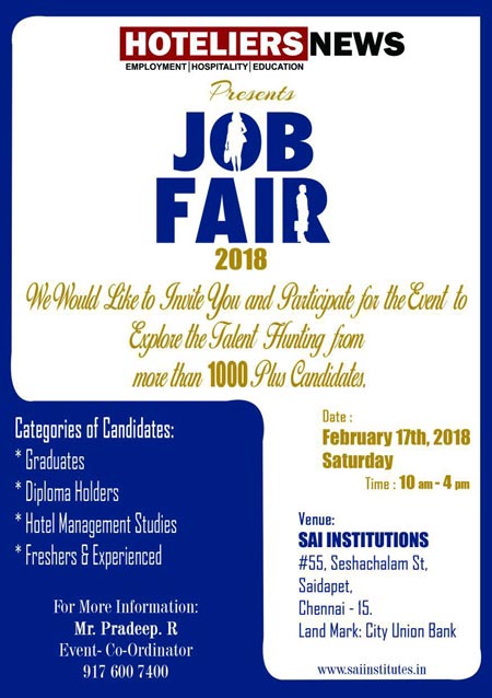 Hoteliers News presents Job Fair 2018 - Participate for the event to explore the talent hunting from more than 1000+ candidates.