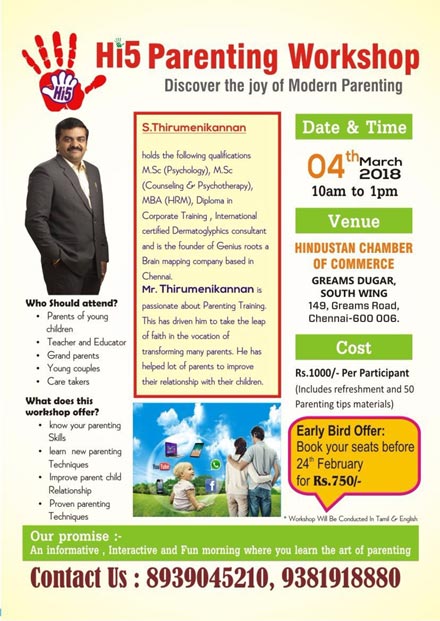Hi5 Parenting Workshop - Discover the joy of modern parenting, will be held on 4th March from 10am to 1pm.