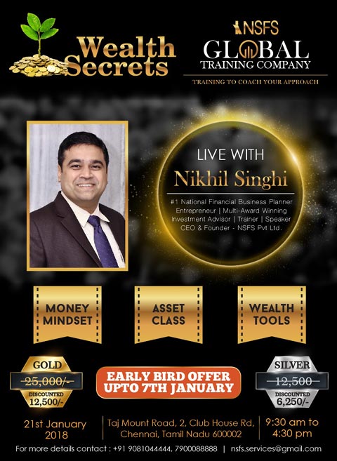 Nikhil Singhi Financial Services Pvt Ltd announce our upcoming program on Wealth Secrets scheduled for the 21st of January, 2018.
