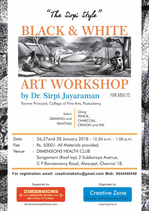 Black and White workshop by Dr. Sirpi Jayaraman, former principal of College of Fine arts, Puducherry.