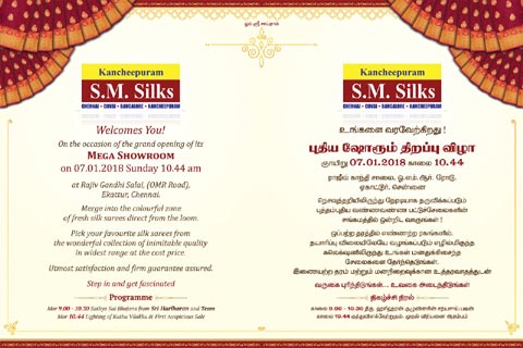 Kanchipuram S.M.Silks opening its Mega Showroom on January 7, 2018 at Rajiv Gandhi Salai (OMR), Ekattur, Chennai.