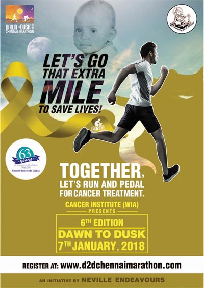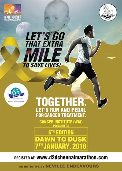 Together lets run and pedal for cancer treatment. Cancer Institute (WIA) presents Dawn To Dusk Marathon 2018 which will be held on January 7, 2018.