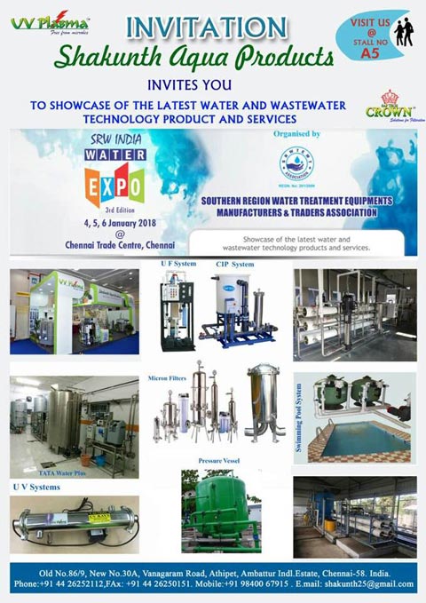 SRW water expo 2018 from 4th to 6th January 2018 at Chennai Trade Centre, Nandambakkam, Chennai.