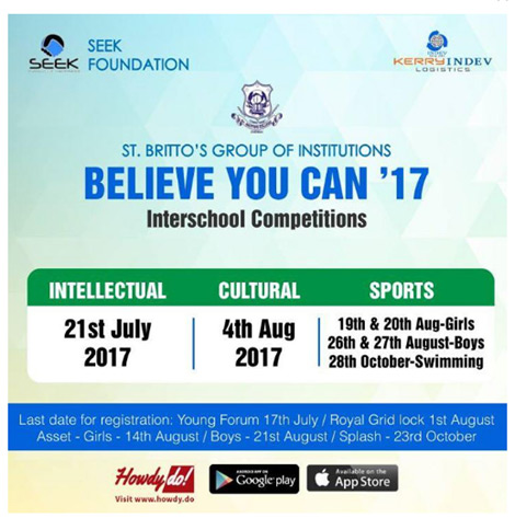 Seek Foundation in association with St. Brittos group of instituions organizes a one of a kind Interschool Competition.