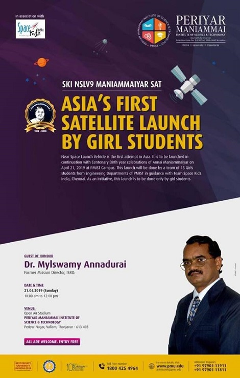Near Space Launch Vehicle is the first attempt in Asia. It is to be Launched in Continuation with CentenaryBirth year celebrations fo Annai Maniammaiyar on April 21, 2019 at PMIST Campus.
