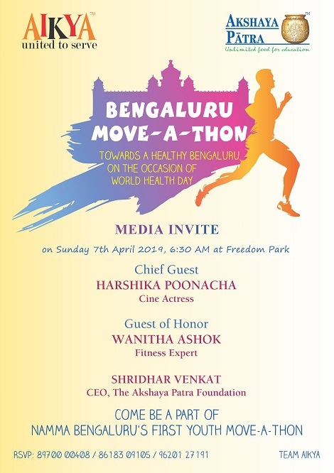 Befitting the theme of �World Health Day�, AIKYA in partnership with Akshaya Patra is conducting �Namma Bengaluru�s First Youth Move-A-Thon.�