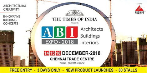 ABI (Architecture, Building & Interiors) Expo 2018 will be held from Dec 14 to Dec 16 at Chennai trade centre.