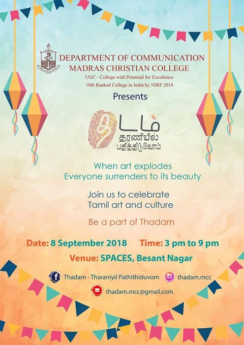 Thadam is an initiative by the Department Of Communication, MCC to revive old art forms of Tamil Nadu and give them a new life in the modern world.