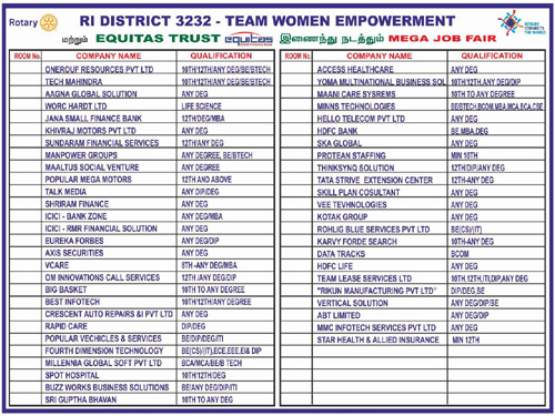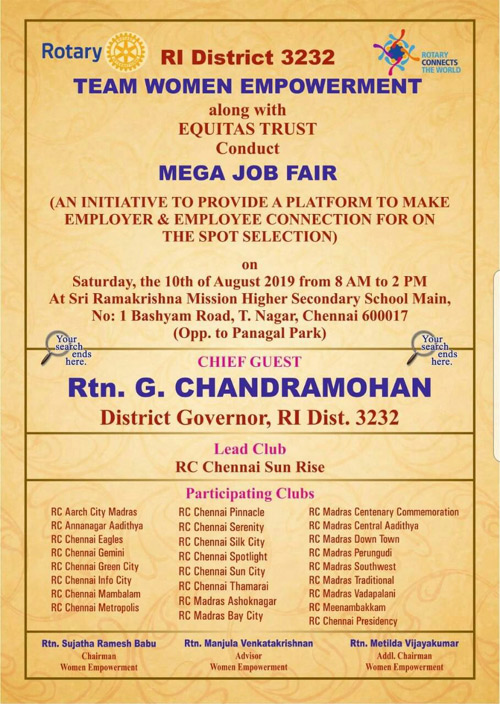RI District 3232 - Team Women Empowerment and Equitas Trust organized Mega Job Fair