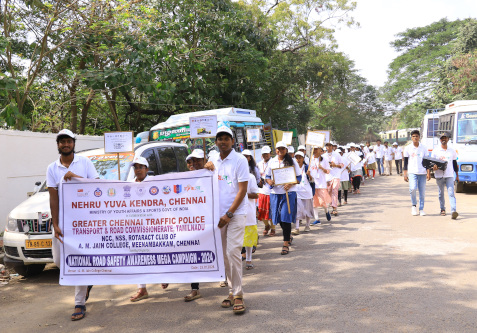 A.M. Jain College has joined forces with the Greater Chennai Traffic Police and Nehru Yuva Kendra for a Mega Road Safety Awareness Program held on January 23, 2024. The initiative brought together 300 volunteers dedicated to promoting safer roads.