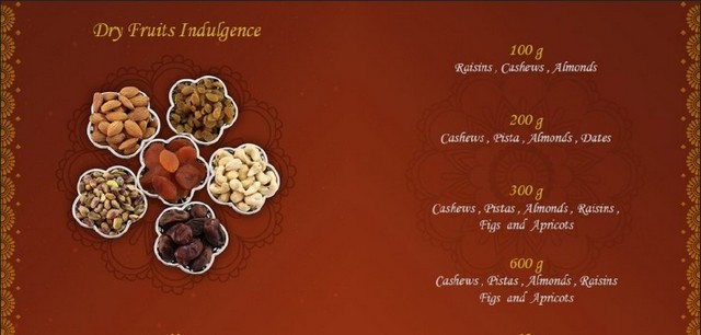 Menu -  Considering the diversity in team our product has multiple choices to select and customize. This includes dry fruits, sweets, savories.