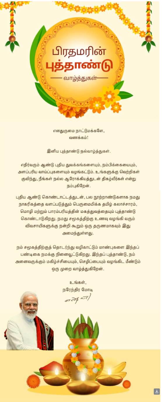 Prime Minister's Tamil New Year Greetings