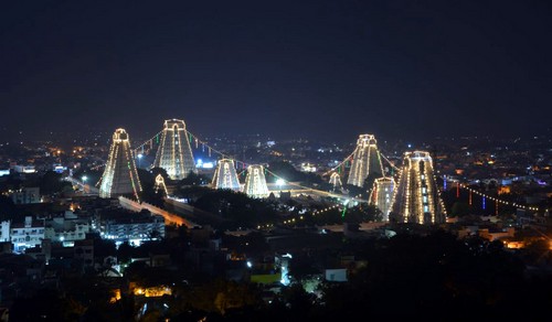 Stunning lighting arrangements were made to prepare Thiruvannamalai temple for the Karthigai Mahadeepam Festival as you can see in pictures below.