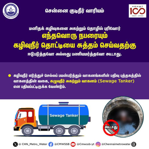 Chennai Metro Water Authority has issued a stern directive prohibiting human waste disposal operators from engaging individuals to clean cesspools manually. This move aims to ensure the safety and dignity of sanitation workers.