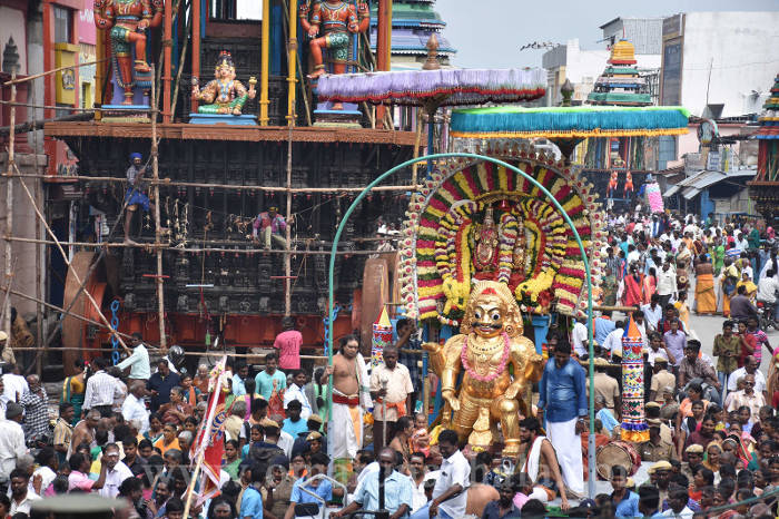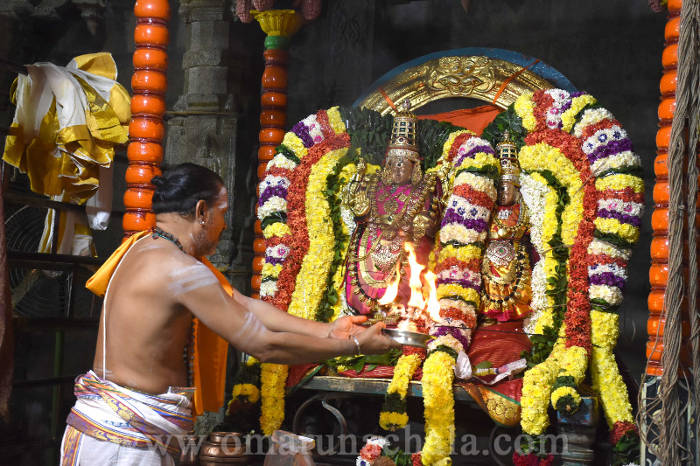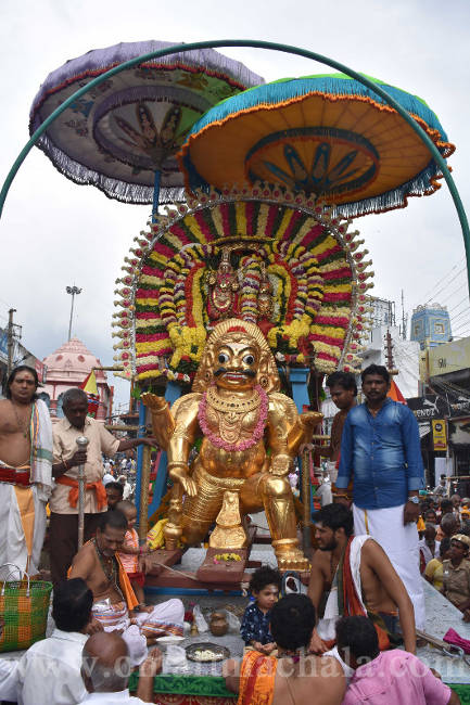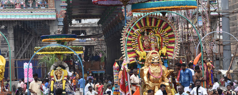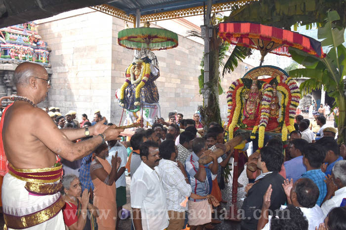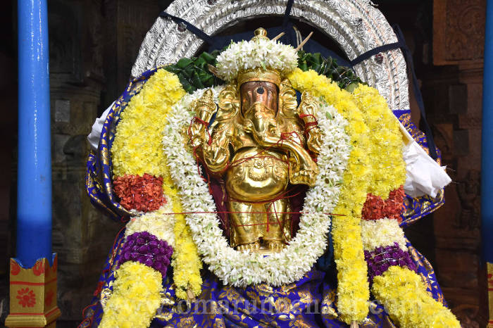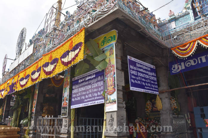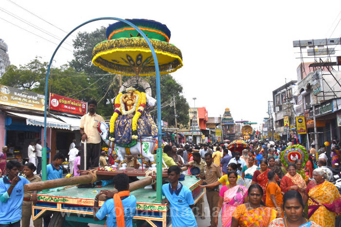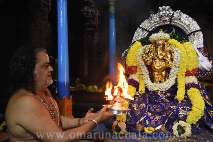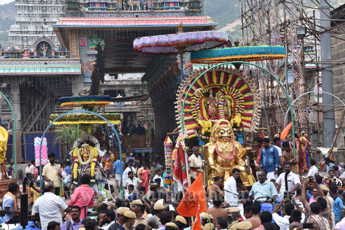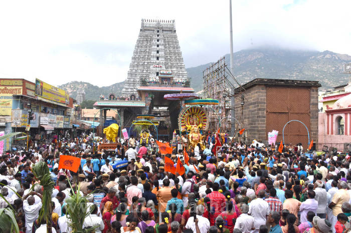 During the noon session of the 3rd Day of the Deepam Festival at Thiruvannamalai, the deities of Lord Chandrasekharar and Lord Vinayaka was taken on a procession around the street adjacent to the temple corridors.