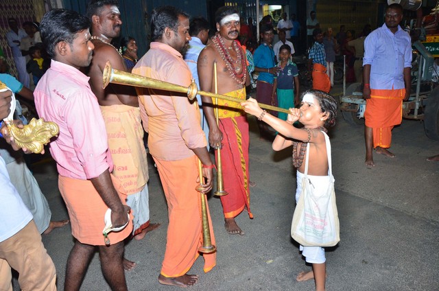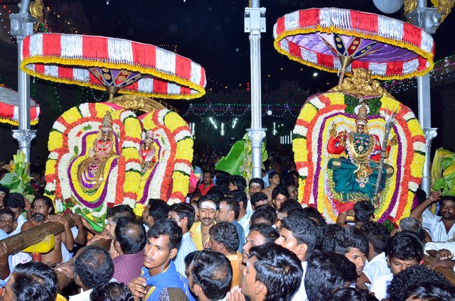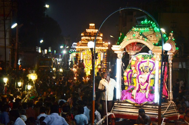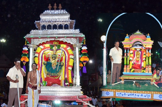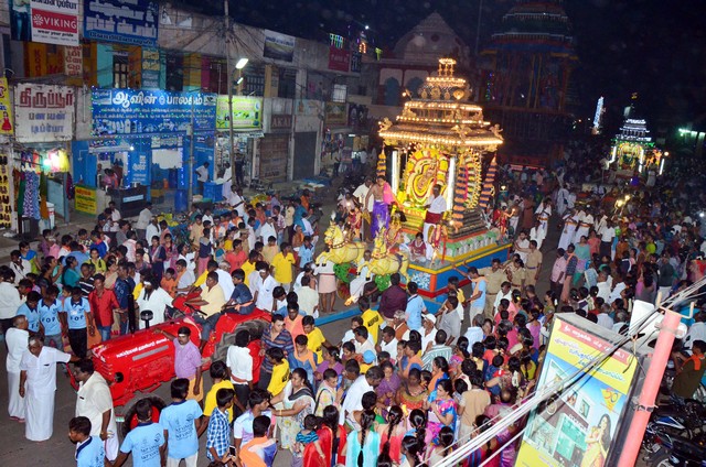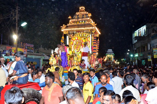 Karthigai Deepam Festival 2017 - Day 2 Night events - the deities of Panchamoorties (5 gods) seated on special carriages was taken on a proession around the streets adjacent to the temple corridors.