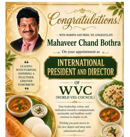 S. Mahaveer Chand Bothra, Managing Director of White Fire Diamond India Pvt. Ltd., has been appointed as the International President and Director of WVC Chennai. His leadership is expected to play a key role in expanding the organization’s global outreach.