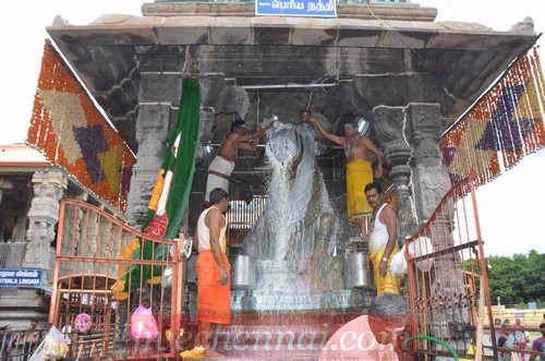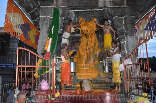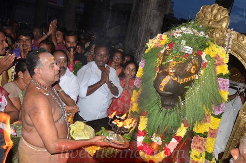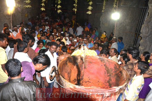 A special Deeparadhanai was performed for the giant oil copra used for lighting the Maha Deepam for the Karthigai festival on top of the mountain in Thiruvannamalai. Earlier, the giant oil copra has been lifted down from the top of the mountain.