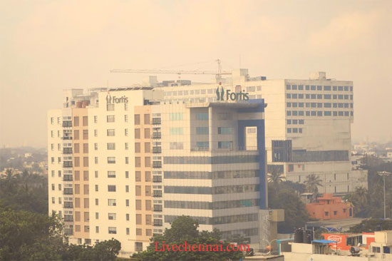 Stand-alone structure of Fortis Malar Hospital ejecting the greatness of healthcare.