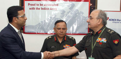 Memorandum of Understanding (MoU) was signed between the Indian Army and ICICI Bank on the Defence Salary Package. The signing ceremony was chaired by the Adjutant General, Lt Gen Rakesh Sharma and was attended by top dignitaries of ICICI Bank headed by Mr Maninder Juneja, Senior General Manager.