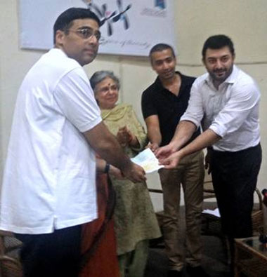 Madras Round Table 1 (MRT1) and Actor Arvind Swamy made a joint contribution of Rs. 5 lakhs to Vidya Sagar Foundation to support to help children with special needs. The Cheque was received by Grand Master Viswanathan Anand who is the Ambassador and patron of Vidya Sagar Foundation. Vidya Sagar today runs several programmes reaching out to over 3800 individuals with disabilities mainly children having started with only three children in 1985.