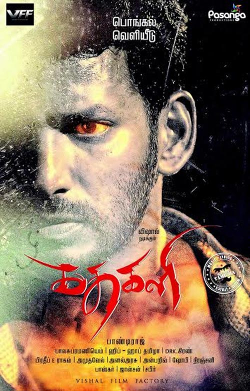 Kathakali is an action thriller which has Vishal and Catherine Tresa in the lead roles. The film which is being produced under the banner of Vishal Film Factory and Pasanga Productions is being directed by Pandiraj. Hiphop Tamizha is composing the music. The film is being released for Pongal. The first look of film was released.