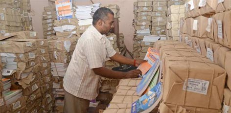 Free text books and note books are distributed to the students studying in Tamil Nadu Government schools and government aided schools. There are 90 Lakhs students studying in classes 1 to 9. For the last few years, the free text and note books are distributed in three terms. This reduces the book weight for the students.