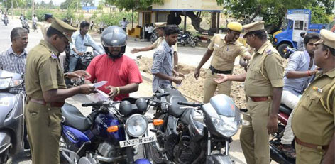 Chennai Police had announced that 10th July will be considered as an Accident free Chennai day. Special checks were conducted at 236 spots in the city from 8 am till 8 pm, and motorists were checked for helmet-less driving, triples, drunken driving, authenticity of licenses and RC books.