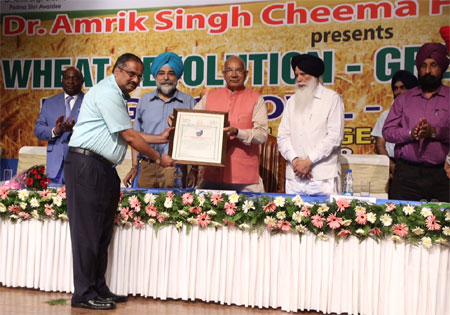 On the occasion of Golden Jubilee Celebrations of Green Revolution, Dr. Amrik Singh Cheema Foundation Trust has bestowed the Life Time Achievement Award on Late Shri C Subramaniam, Architect of India�s Green Revolution and Bharat Ratna Awardee; for his contribution to India�s Food Security. Mr. S S Rajsekar, son of C Subramaniam and Managing Trustee, National Agro Foundation received the award from Hon�ble Shri Kaptan Singh Solanki, Governor of Haryana.