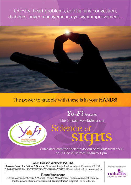 Come and learn the ancient wisdom of Mudras form Yo-Fi on 1st Dec 2012 from 10 am to 1 pm.