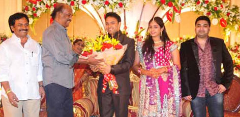Superstar Rajinikanth wished the newly married Jothikrishna - Aishwarya at their marriage reception held at Leela Hotel, Chennai on Monday(Nov 26,2012) evening.