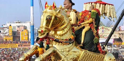Azhagar Temple Kallazhagar festival commences on 26th April. The deity adored with Kandangi silk dress and carrying the stick, bow, and the arrows and starts for Madurai from the Kodappa Naicker Hall.