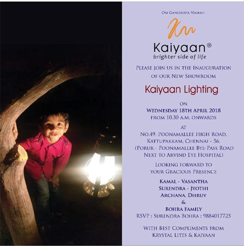 The company was established in Chennai in the year 2007, Kaiyaan Lighting in a short span has managed to position itself as a main player in the retail and projects as well with its stunning collection of display in its showroom.