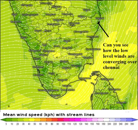 With intense rains happening in West Coast and Ghat areas, we have to forget thunderstorms (Damal Dumeel Type) and maybe after 3-4 days, thunderstorm activity will slowly in our state. Today, there is some chance for light rains in Chennai. Winds are from NW are converging with winds from SW close to our Chennai city. As the winds are too fast. Rains wont be everywhere only some part of areas will get rains.