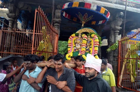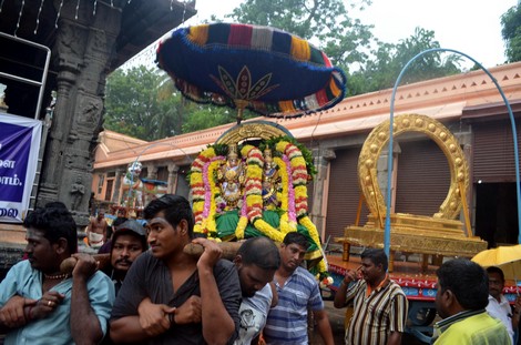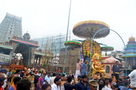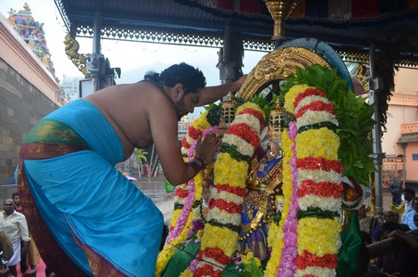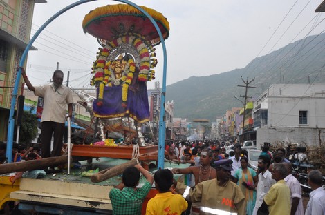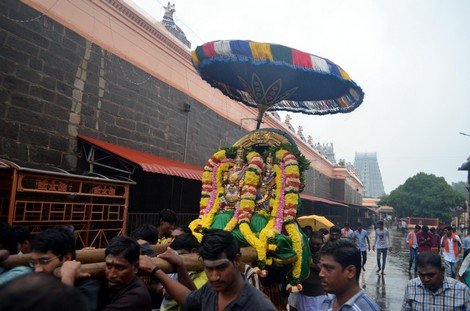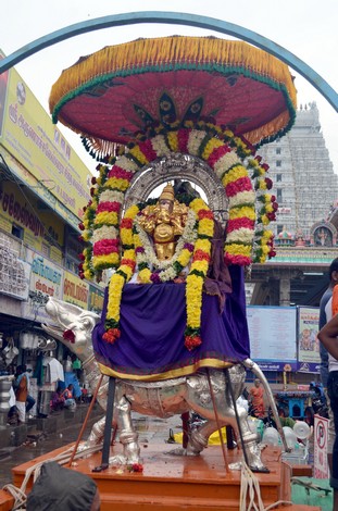 During the noon session of the 3rd Day of the Deepam Festival at Thiruvannamalai, the deities of Lord Chandrasekharar and Lord Vinayaka was taken on a procession around the street adjacent to the temple corridors. The event of Thiruvizha Undial (Festival Hundi) was performed at the 3rd corridor near the Kodimaram (flag-tree).
