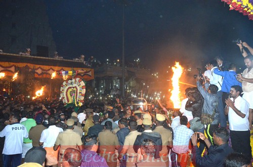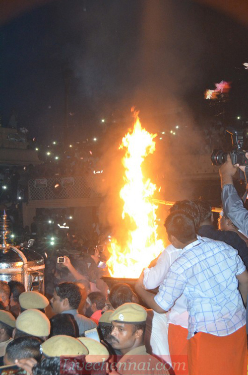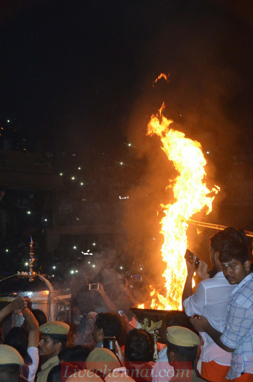 The Maha Deepam was lit at 6 PM on Friday, 23rd November at the mountain peak as the climax part of the grand Karthigai Deepam festival in progress at the Tiruvannamalai Lord Arunachaleswarar temple. Below are some of the pictures showcasing the event.