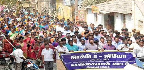 The strike by JACTTO-GEO (Joint Action Council of Tamil Nadu Teachers` Organisations and Government Employees` Organisations)insisting on various demands continues for the 7th day today.