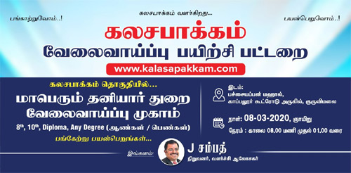 We propose to conduct a job fair in the Kalasapakkam Legislative Assembly constituency for the jobless youth and aspiring job seekers!