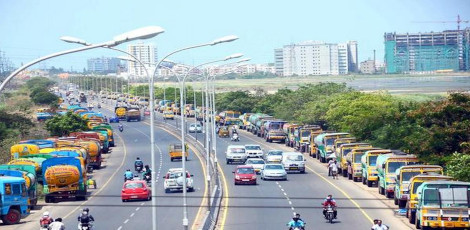 It was mentioned by a local commuter that this unauthorised parking issue has been raised with the CM cell and the complaint was forwarded to the police department. The issue is not yet over inspite of assurances from the police department. It must be noted that the parked lorry occupied the first lane to the left on each side of the road. Point is that this was the lane dedicated to the two wheelers to segregate them from the fast moving bigger vehicles. The motorists are in huge danger as the space has been encroached by the lorries.