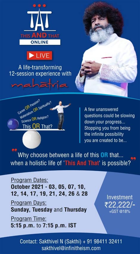 This AND That (TAT), is a life-transforming 12 Online Live experience with Mahatria to provide breakthroughs to Holistic Abundance.