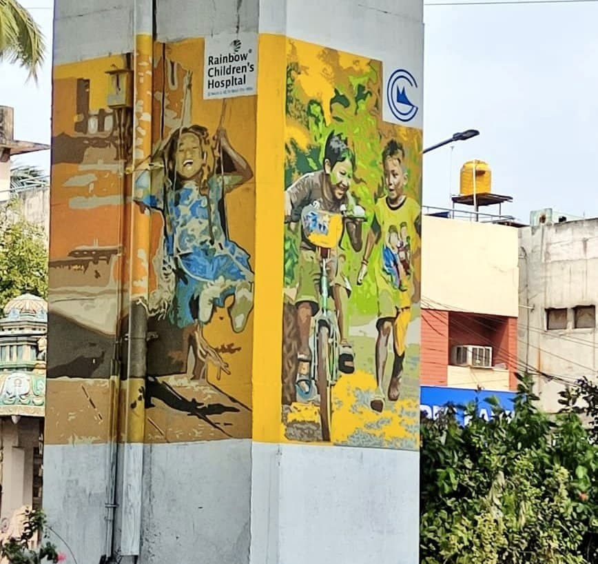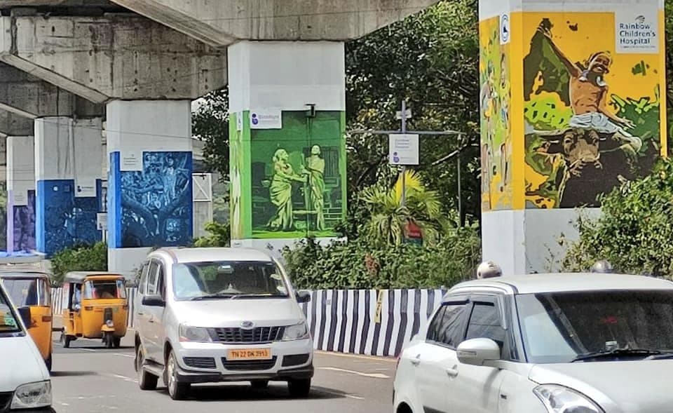 Here are a few pictures for you of the beautiful paintings on the @ChennaiMetroRail pillars at Saidapet Little Mount!