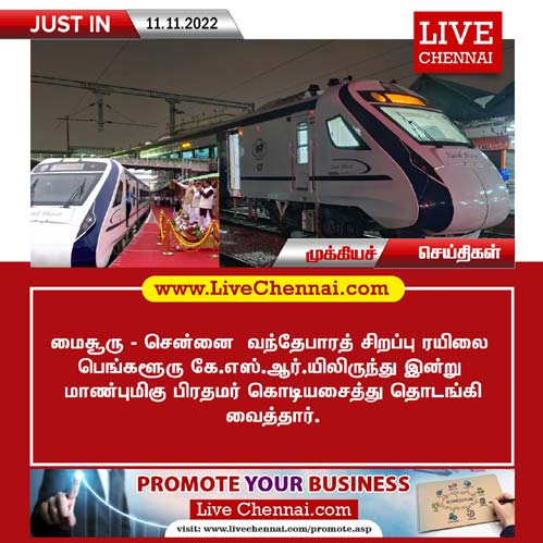 Prime Minister Narendra Modi inaugurated the Vande Bharath train from Chennai to Bangalore.