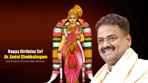 LiveChennai.com extends its warmest wishes to Dr. Andal Chokkalingam, President of Vishwa Hindu Parishad Tamil Nadu, on his birthday today. Dr. Andal Chokkalingam is a highly respected leader in the state and has been instrumental in promoting Hindu culture and traditions through his organization.