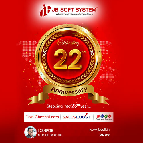 JB Soft System proudly marks its 22nd Anniversary, a testament to our unwavering commitment to innovation and excellence. At the helm of our success is Mr. J Sampath, our visionary CEO, whose dedication has been instrumental in propelling us forward.