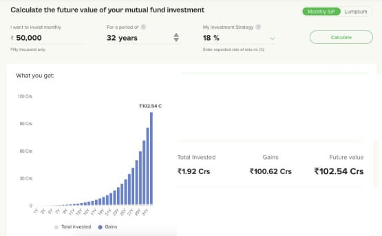 This visionary investor diligently invested 50,000 rupees each month into mutual funds for a span of 32 years. This disciplined approach has set them on track to amass an impressive 100 Crores, securing their retirement and leaving a legacy for their family.