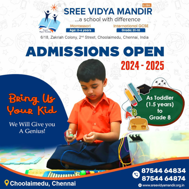 Parents, it`s time to ignite the spark of brilliance in your child`s educational journey! Sree Vidya Mandir Global is thrilled to announce admissions open for the 2024-25 academic year!